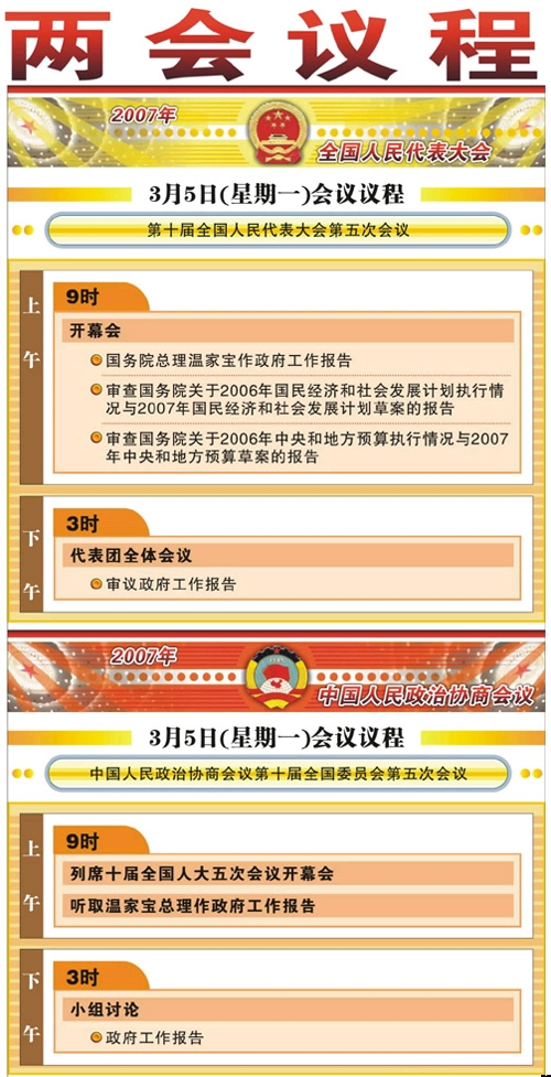 附:3月5日两会议程