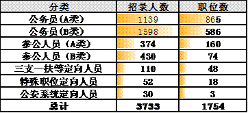 本次考试共1754个职位,相比去年1905个职位,减少151个;招录3733人,相比去年4055人,减少322人。本次考试公共科目的形式继续延续去年的A、B卷。依然是“具有两年以上基层工作经历”的职位考A类试卷,报考条件规定招录对象基层工作年限“不限”的职位考B类试卷。为了帮助广大考生能正确选择适合自己的职位,中公教育专家对职位表进行了全面透析,以供广大考生参考。