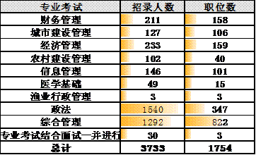 专业科目考试分为政法、综合管理、经济管理、财务管理、信息管理、城市建设管理、农村建设管理七大类。其中,农村建设管理仅限优秀村干部、选聘到村任职的高校毕业生和“三支一扶”高校毕业生定向报考乡镇(街道)机关公务员时根据招录职位的要求选报。此外,特殊职位专业科目根据招录职位的要求选报。另外还有公安系统定向招考的3个职位共30人的专业考试结合面试一并进行。
