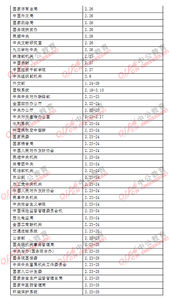 | 2011国家公务员考试各部委面试时间表 |