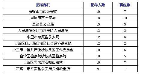 附1:2011年上半年宁夏回族自治区招考人数最多的十大单位
