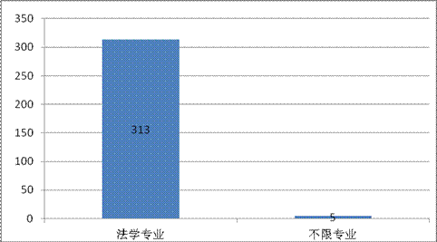 由招考简章分析可知,有313个岗位要求法学类专业背景,占总招录人数的83.5%。不限专业背景的岗位仅有5个,占总招录人数的1.3%。