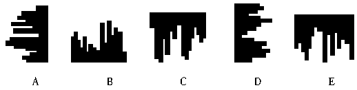 【中公名师解读】A。解析:观察图形E,右边三条较为明显的黑色长条间隔排列,因此排除C、D两项;再观察图形E中间空白部分,可以排除B项,确定答案为A。
