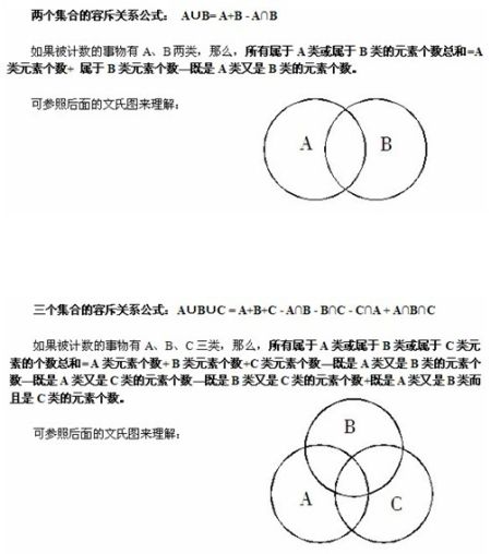 这两个公式分别主要针对两种情况:第一个公式是针对涉及到计算两类事物的个数,第二个公式是针对涉及到三类事物的个数。