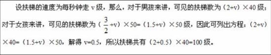 10.中公解析:此题答案为B。扶梯问题。孩子往上走,类似于顺水航行,孩子的实际速度=孩子的行走速度+扶梯的速度,那么可见扶梯数=(孩子的行走速度+扶梯的速度)×行走时间。