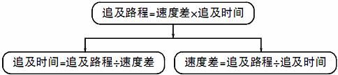 在追及问题中,我们把开始追及时两者的距离称为追及路程,大速度减小速度称为速度差。由此得出追及问题的公式: