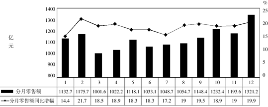 10.中公解析:本题答案选B。根据条形图可知,2010年社会消费品零售总额=1132.7+1175.7+1001.6+1022.2+1118.1+1033.1+1048.7+1054.7+1148.4+1232.4+1193.6+1321.2,运用尾数法可知结果的尾数为“4”,答案选B。