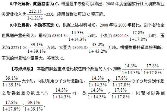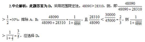 3.中公解析:此题答案为B。采用取整法、首数法。4930÷(1+20.3%)≈4930÷1.2=41XX,与B项相近。
