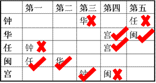 题目中求解人与名次的一一对应,得知是分析推理题目