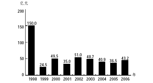 全国1998年至2006年地质灾害造成直接经济损失情况图