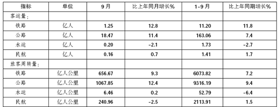 全社会客运运输量(2008年9月)