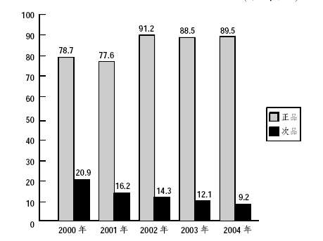 一家企业对2000-2004年生产的某种产品的正次品数进行了统计,统计结果如下图: