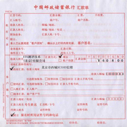 请考生注意: 您通过邮局汇款时,不要使用加密方式. 如果因考生使用加密方式造成汇款丢失,我们不负其相关责任。