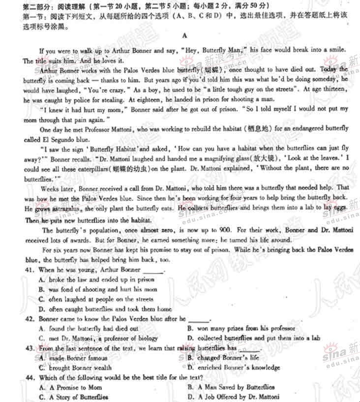 2007年高等学校全国统一考试英语试题(浙江卷)