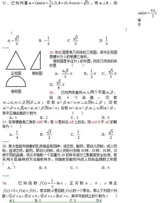 2009年高考最有可能考的24道数学理题(新课标)