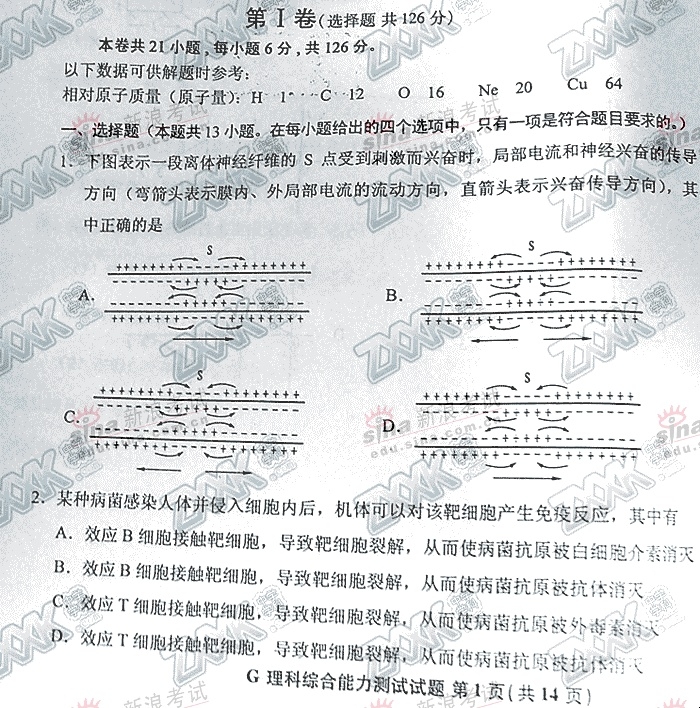 您现在的位置: 中国1考网 >> 高考专区 >> 试题中心 >> 理科综合 >> 文章正文