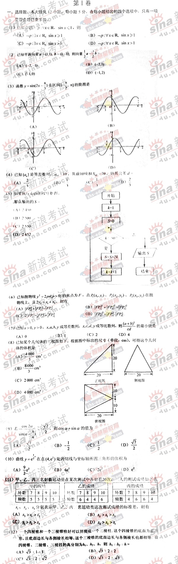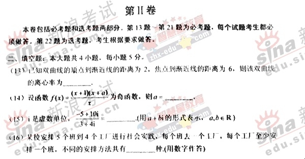 2007年高等学校全国统一考试数学理试题(宁夏卷)