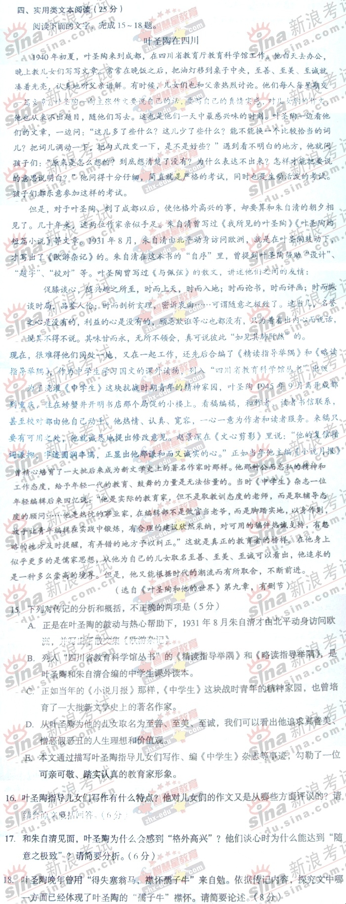 您现在的位置: 中国1考网 >> 高考专区 >> 试题中心 >> 语文 >> 文章正文