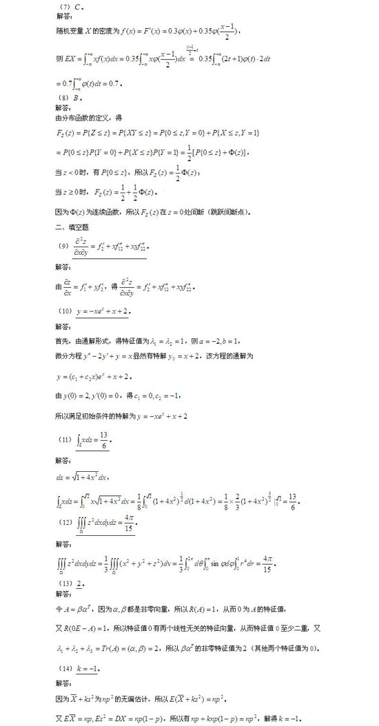 09年考研数学一真题及参考答案(文都教育)(2)图为:09年考研数学一真题及参考答案(2)